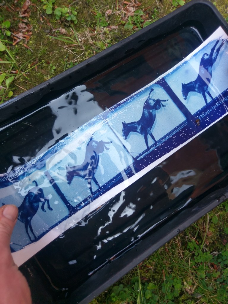 An interest in alternative photography developed whilst on my Masters. I have been working with Cyanotype process for over five years and find the process fascinating each blue print image is unique. I find that each time I am working in the studio, you never know what will happen. It is always so exciting to see the final print emerge.